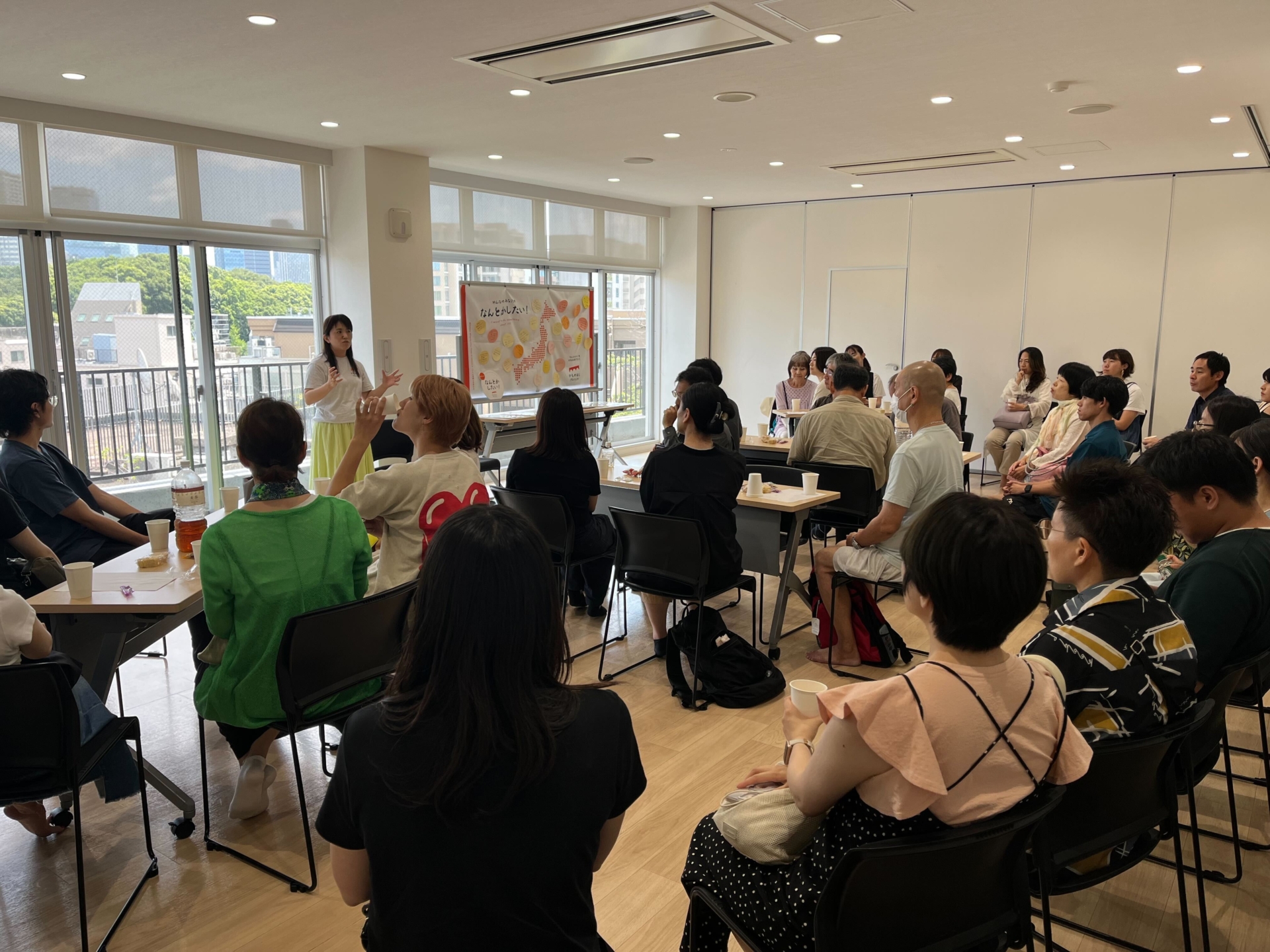 当日はお盆最終日の朝早い時間の開催でしたが、対面イベントでは最多となる106名の方にご参加いただきました。上映後のミニトークではアフターケア事業の現場で活動している村田から、児童養護施設を巣立った若者たちが実際にどんな生活をしており、どのような困りごとがあるのかについてを語り、かものはしプロジェクトが彼らに対してどのような支援を行っているかを説明しました。