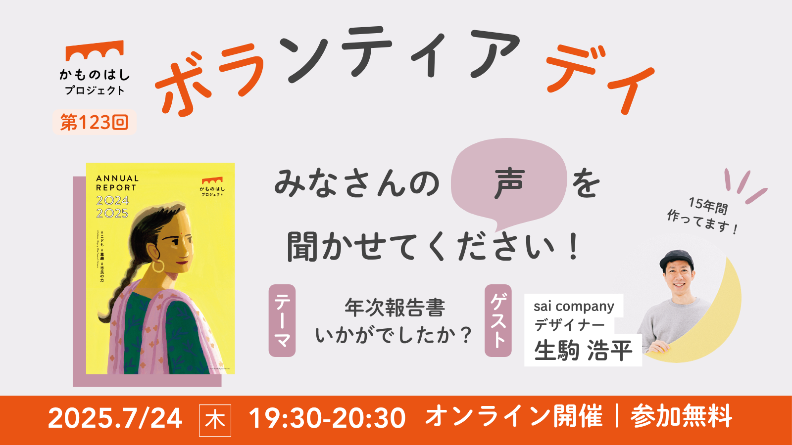 かものはしロゴ、年次報告書、WEBサイトのデザインなどを15年以上お手伝いさせていただいていて、たまにこっそりと、年次報告書の編集後記などで登場させていただいたり、先日はボランティアデイにもゲストとして参加させていただきました。