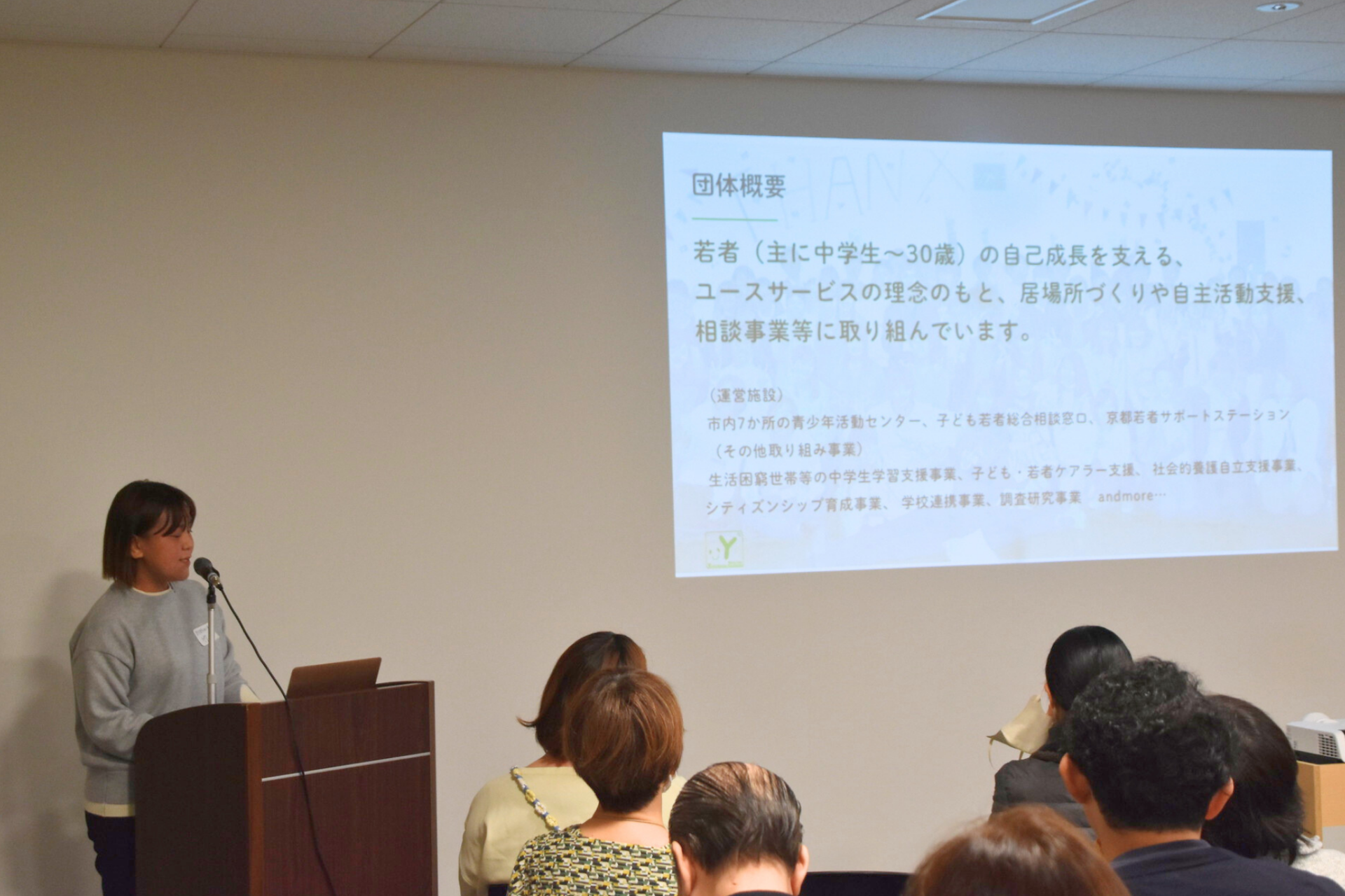 イベント終了後、希望者向けのオプション企画を実施しました。京都市ユースサービス協会の運営する「中央青少年活動センター」を訪問し、若者がふらっと来てゆっくり過ごすことのできる場づくりの工夫を、実際に見学しながら伺いました。