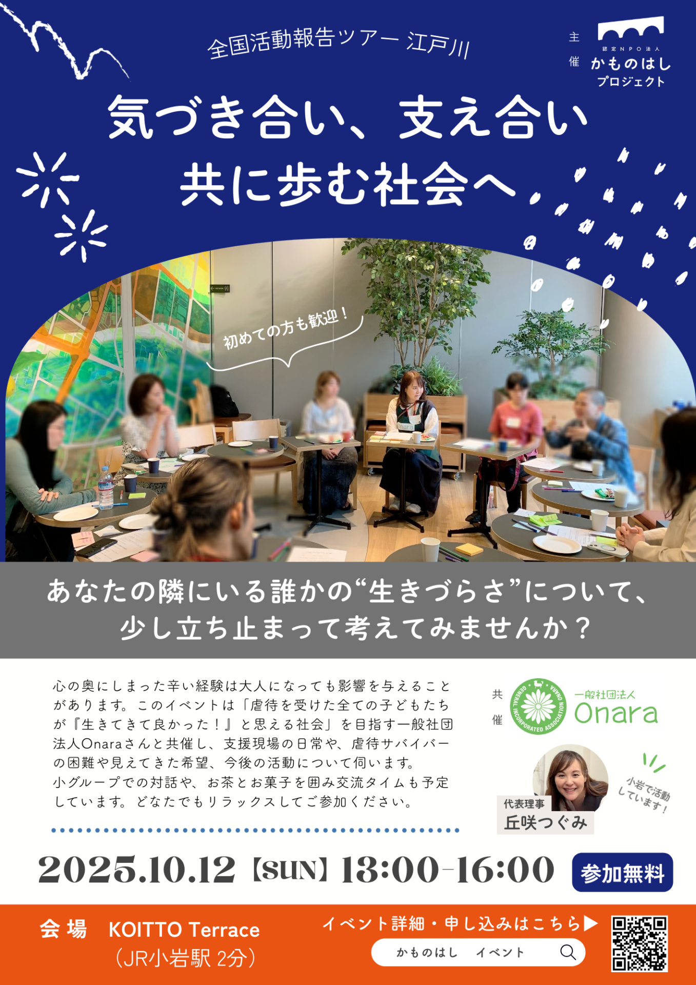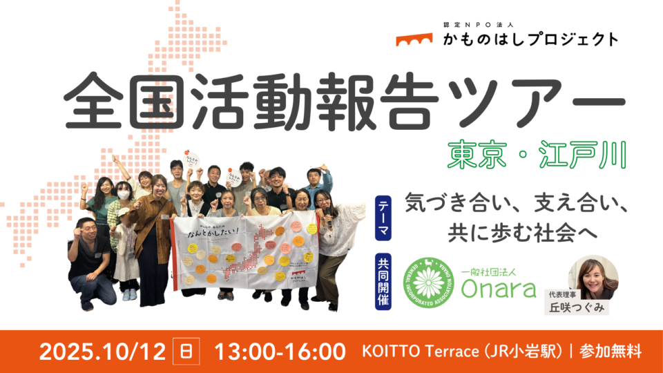 今回のイベントは、東京・江戸川区で活動している 一般社団法人Onara さんと共同で開催します。